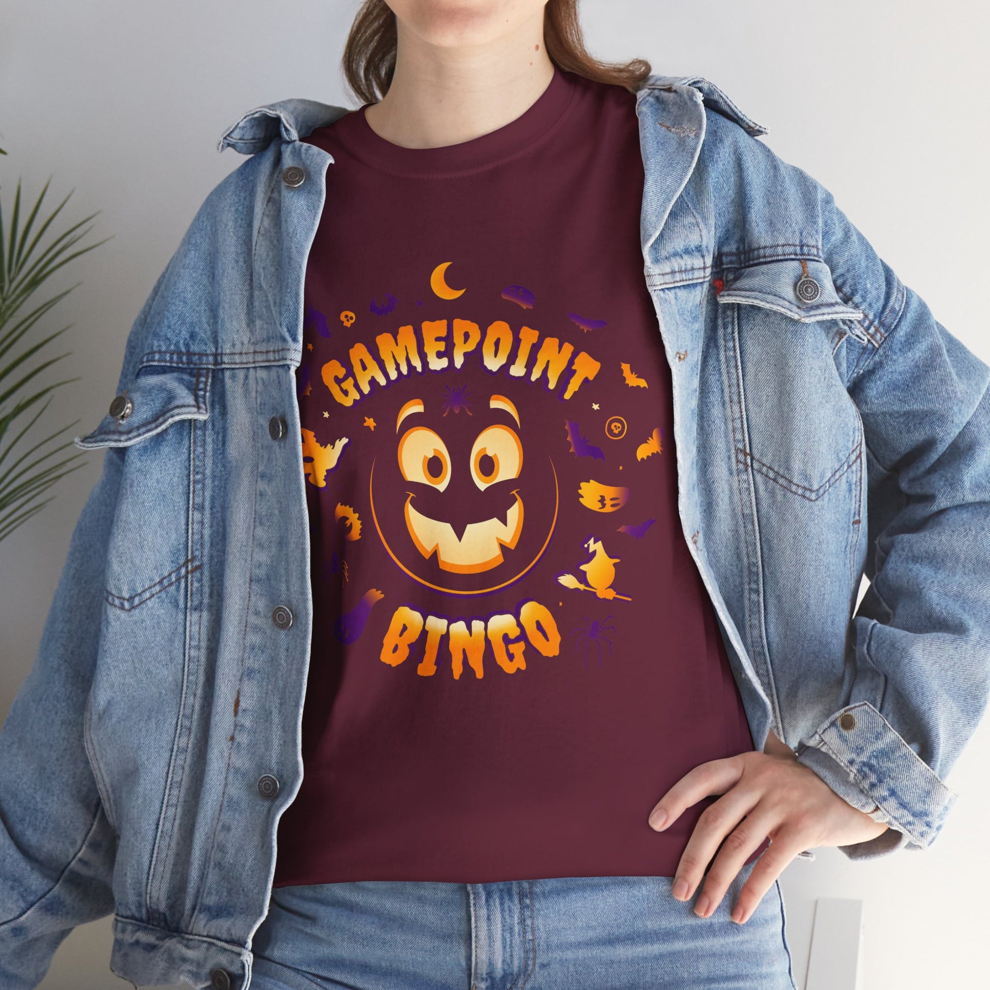 Get ready to celebrate in style with our Halloween GamePoint Bingo T-shirt! This unisex heavy cotton tee is the ultimate wardrobe staple, providing the perfect foundation for your casual looks. With a specially designed Halloween theme, it’s sure to elevate your game day or festive outings. Embrace the season and show off your GamePoint Bingo pride with this must-have T-shirt!